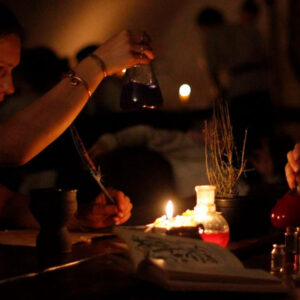 Każdy adept przejdzie Ceremonię Przydziału — klękając przed Mistrzem i zostając przyjętym do jednego z bractw: Fortis, Ignis lub Veritas. Wieczorami czekają Was legendarne przygody: bieg po Przepowiednię, zdobycie sigila — magicznego medalionu, bal zimowy oraz prezentacje bractw.